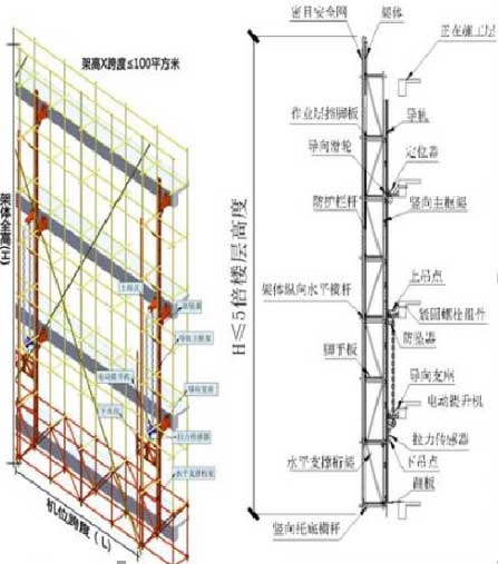 附着式升降脚手架应由竖向主框架、水平支撑桁架、架体构造、水平支撑结构、防倾装置、防坠装置组成。