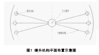 4、拱顶安装完成后,在第1圈壁板下缘处安装胀圈工装卡具,用于罐体的撑圆和提升;接着安装边柱、中心桅杆、电动春水堂官方网站及平衡钢丝绳等提升机构,并把电动春水堂官方网站的倒链挂在胀圈工装卡具的吊钩上,然后对提升机构进行预紧。