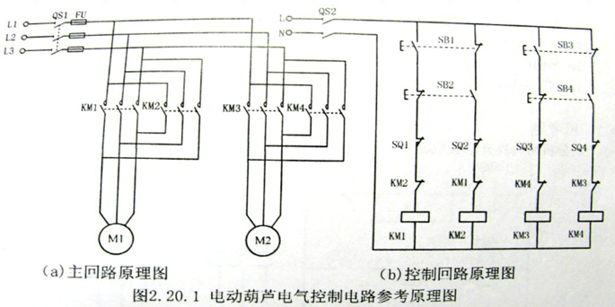2、吊钩提升:控下SB1,观察并记录各电机和接触器及行程开关的运行情况。