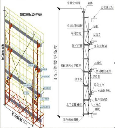 5、升降后主要检查的项目有:各受力杆件是否完备且充分受力、底部翻板是否覆盖严密等。