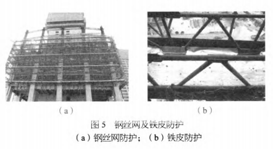 发布日期:2022-05-06 10:42:45 访问量:1327超高层钢结构焊接量大,因此,架体外满挂一层10mm孔径钢丝网。超高层施工周期长、高空风荷载大、钢丝网抗冲击能力较强,较密目安全网防火性能优越。架体共7层操作平台,每层平台均采用50mm厚木脚手扳搭设,考虑到高空防火隐患大,脚手板全部满铺铁皮,有效增加了架体防火性能。