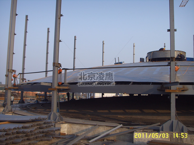 立式筒型储罐施工有多种方法,如正装法、中心立柱法、气顶法、水浮法、内立柱倒装法等,如今较为普遍采用立柱倒装法。倒装法相对正装法具有劳动效率高,强度小,施工人员均在2米以下的平台上操作,因而人身安全得到了可靠保证。倒装法又分电动春水堂官方网站倒装法和液压顶升倒装法。焊罐电动春水堂官方网站倒装法相对液压千斤顶倒装法不仅具有设备简单,操作简便,造价低廉等优点,而且不使用液压油、受压元件等消耗品,无漏油发生,对工作环境无污染。